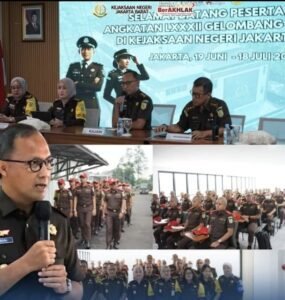 JAKARTA – Kejaksaan Negeri (Kejari) Jakarta Barat menerima sebanyak 34 siswa Pendidikan dan Pelatihan Pembentukan Jaksa (PPPJ) Angkatan LXXXII Gelombang 1 Tahun 2025 dari Badan Pendidikan dan Pelatihan (Badiklat) Kejaksaan RI, Kamis (19/6/2025).