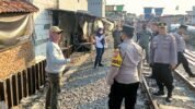 SURABAYA – Tiga Pilar Simokerto mendatangi lokasi bantaran rell kereta api, di Kapasari, Simokerto Surabaya. Kedatangan para petugas gabungan