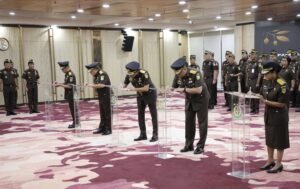 JAKARTA – Jaksa Agung ST Burhanuddin melantik dan mengambil sumpah jabatan Jaksa Agung Muda Pembinaan (Jambin) dan empat pejabat Staf Ahli Jaksa Agung di Lantai 11 Gedung Utama Kejaksaan Agung, Jakarta pada Kamis (2/10/2025).