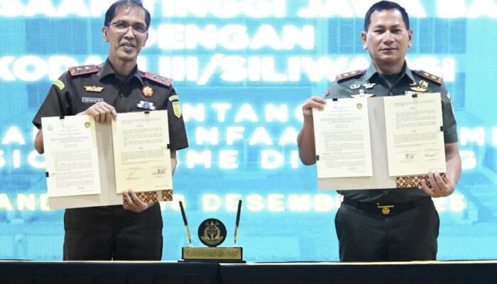 BANDUNG – Kepala Kejaksaan Tinggi Jawa Barat (Kajati Jabar) Dr. Hermon Dekristo, S.H., M.H meneken Perjanjian Kerja Sama (PKS) dengan Panglima Kodam (Pangdam) III Siliwangi, Mayor Jenderal (Mayjen) TNI Kosasih, S.E. di Aula R.Soeprapto kantor Kejati Jabar, Rabu (18/12/2025).