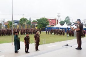 SAMARINDA – Kepala Kejaksaan Tinggi (Kajati) Kalimantan Timur (Kaltim) Dr. Iman Wijaya, S.H.,M.Hum. melantik, mengambil sumpah dan serah terima jabatan Kolonel Laut Joko Sutikno, S.H., M.H., CIQnR menjadi Asisten Pidana Militer, di halaman kantor Kejaksaan Tinggi Kalimantan Timur pada Rabu (19/3/2025).