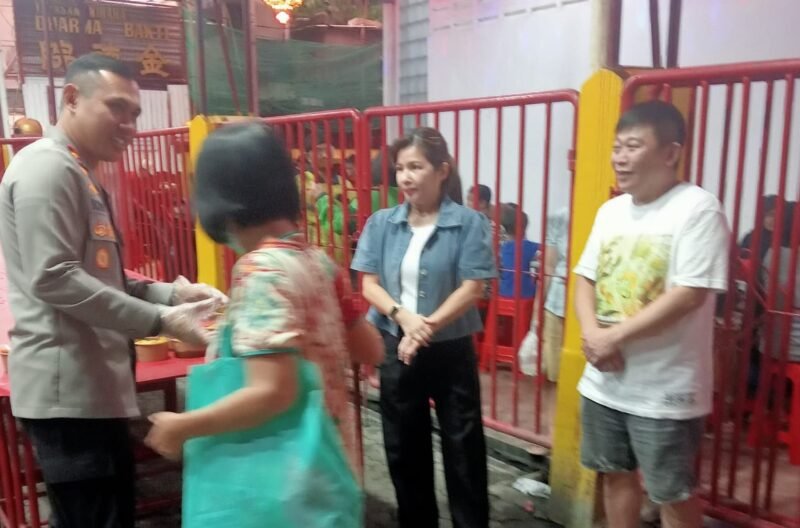 JAKARTA – Kapolsek Metro Tamansari Kompol Bobby Muhammad Zulkifli bersama Yayasan Wihara Dharma Bhakti menggelar kegiatan berbagi berkah Ramadan dengan membagikan 450 paket makanan untuk berbuka puasa kepada warga di sekitar kawasan Glodok, Kamis (12/3/2026).