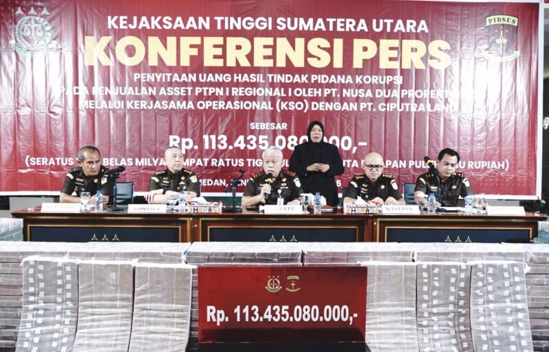 MEDAN – Kejaksaan Tinggi Sumatera Utara (Kejatisu) kembali menerima pengembalian kerugian keuangan negara terkait kasus dugaan korupsi penjualan aset PT Perkebunan Nusantara l (PTPN 1), dari PT. Nusa Dua Propertindo (PT. NDP) sebesar Rp.113 miliar, Senin (24/11/2025).