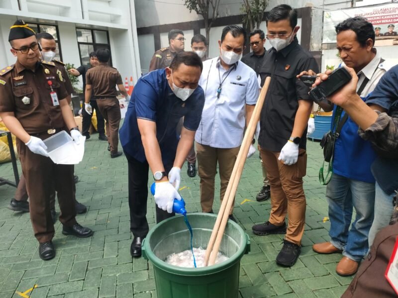 “Melalui Surat Perintah, memerintahkan kepada kami untuk melaksanakan kegiatan pemusnahan pada hari ini,” ujar Kajari Perak, Darwis Burhansyah berlangsung melaksanakan pemusnahan bersama Kepala Bidang (Kabid) Pemberantasan dan Intelijen Badan Narkotika Nasional Provinsi (BNNP) Jawa Timur beserta beberapa perwakilan dari Polrestabes Surabaya, dan Polres Pelabuhan Tanjung Perak Surabaya.