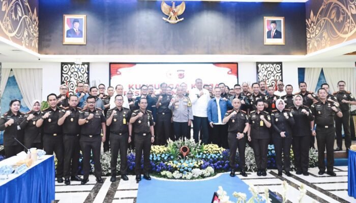 BANDUNG – Kepala Kejaksaan Tinggi (Kajati) Jawa Barat (Jabar) Dr. Hermon Dekristo, S.H., M.H. didampingi Wakajati Dr. Taufan Zakaria, S.H., M.H. beserta Asisten dan Kajari se-wilayah Jabar, menyambut kunjungan kerja (Kunker) Komisi III DPR RI di Mapolda Jabar pada Jum’at (21/11/2025).
