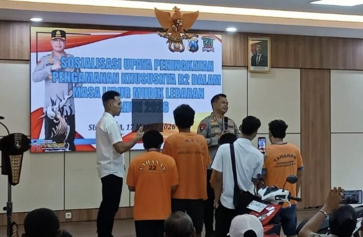SURABAYA — Dalam rangka meningkatkan keamanan dan ketertiban masyarakat saat mudik Lebaran 2026, Polrestabes Surabaya menggelar kegiatan sosialisasi upaya peningkatan pengamanan, khususnya kendaraan roda dua (R2).