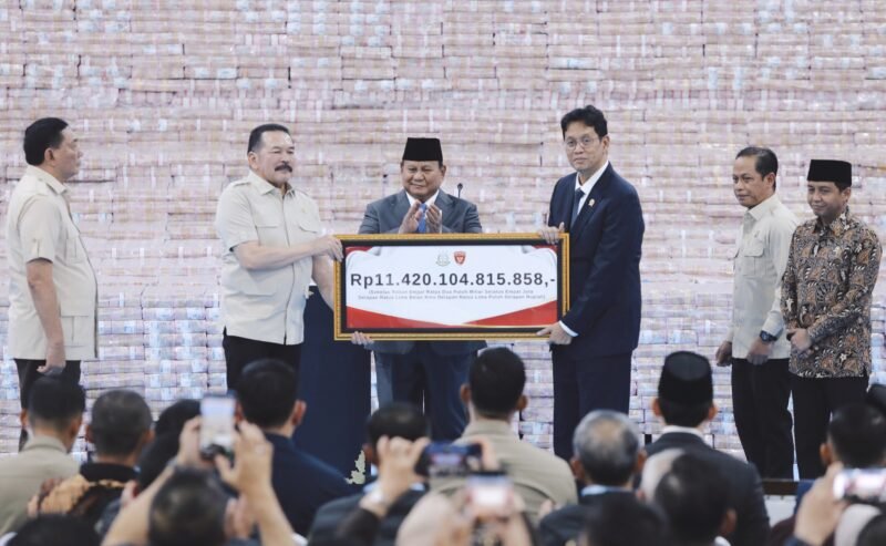 Kegiatan penyerahan uang ini disaksikan langsung oleh Presiden RI Prabowo Subianto dan Jajaran Menteri Kabinet Merah Putih, di kantor Kejaksaan Agung, Jakarta pada Jumat (10/4/2026).