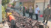 SURABAYA – Lurah Kapasan, Simokerto Surabaya, Sukarno pantau kelancaran pekerjaan Proyek Dana Kelurahan (Dakel) bersama Babinsa dan