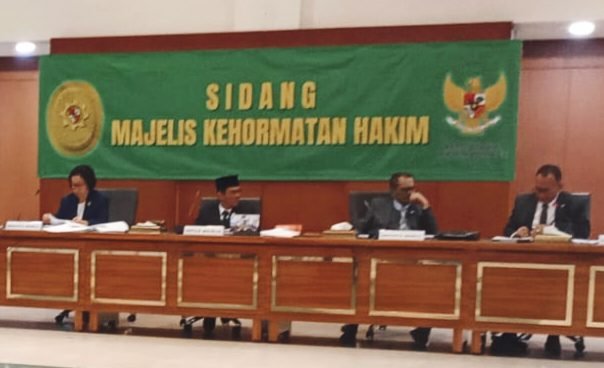 “Atas pemeriksaan terhadap terlapor, Majelis Kehormatan Hakim memutuskan terlapor dijatuhkan sanksi berat berupa pemberhentian tetap dengan hak pensiun,” kata Ketua Majelis Desmihardi.